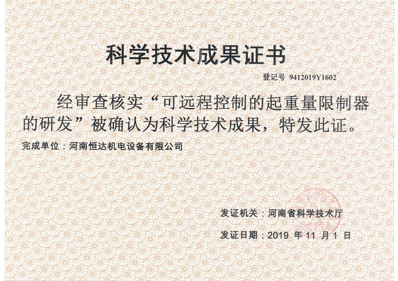 成果--可遠(yuǎn)程控制的起重量限制器的研發(fā)