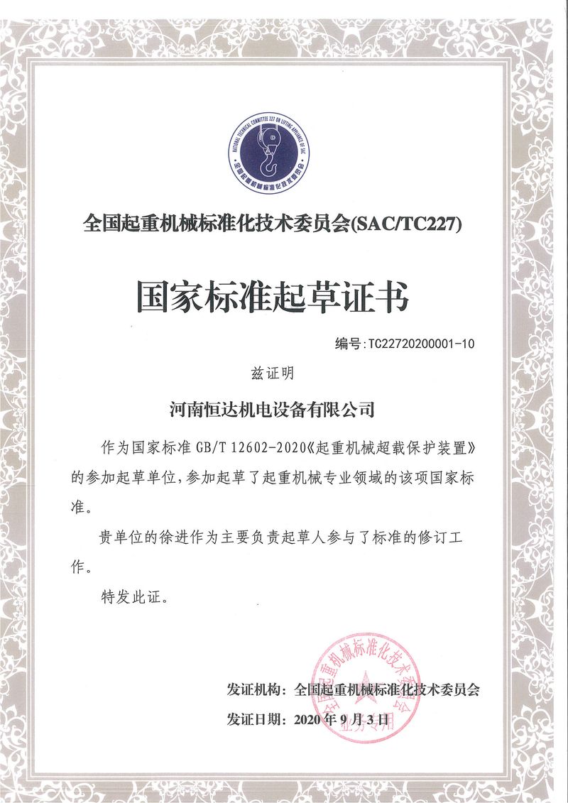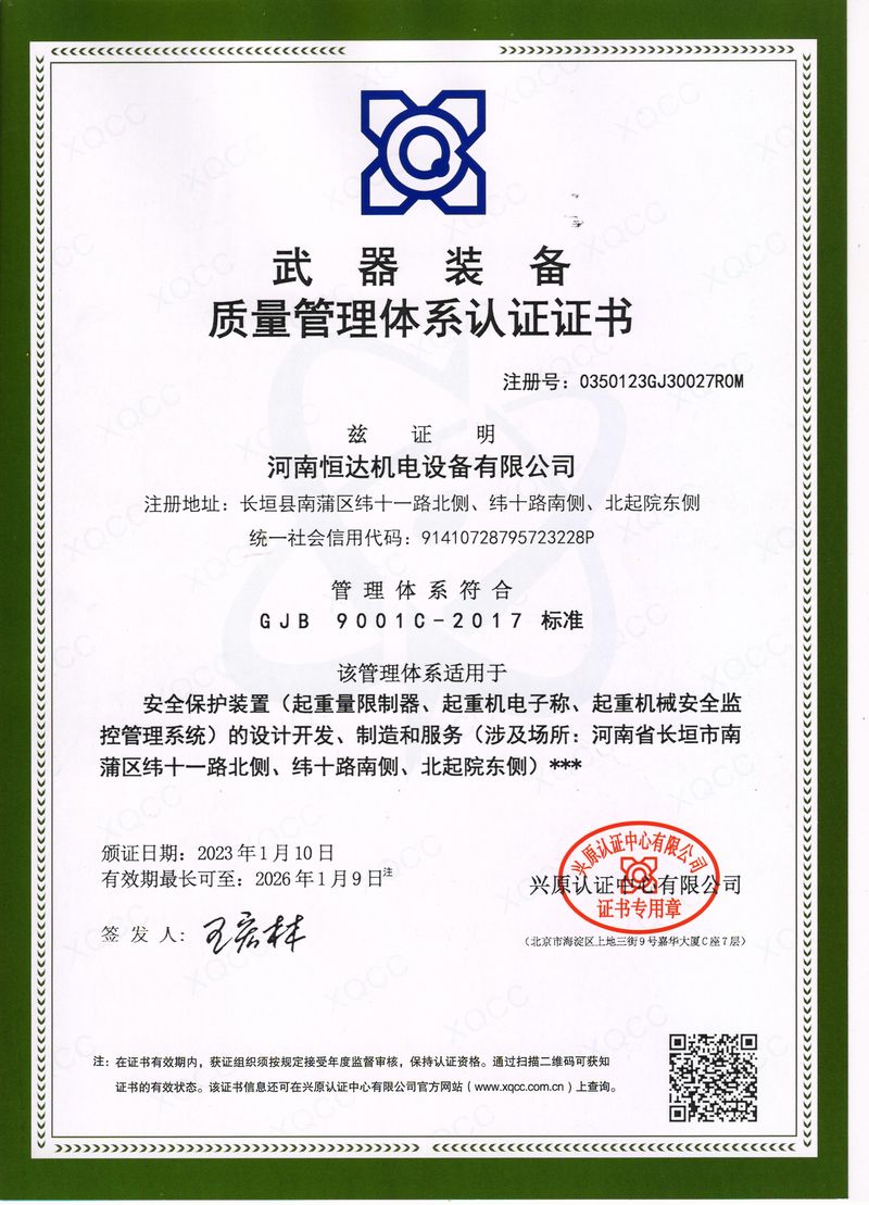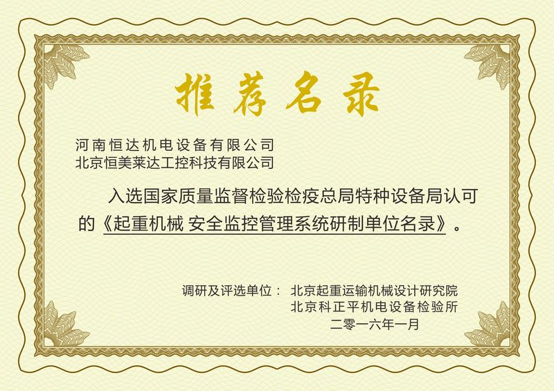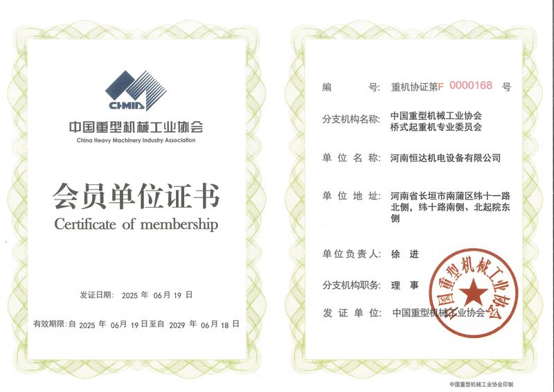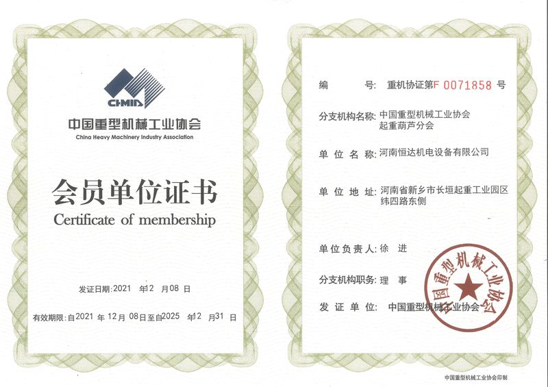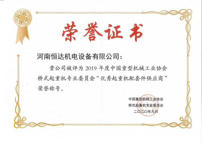 是中國重型機械工業(yè)協(xié)會橋式起重機專業(yè)委員會及葫蘆分會理事單位及多年的優(yōu)秀配套件供應商。物料搬運工程設(shè)備成套與服務(wù)分會理事單位,是ISO9001:2008質(zhì)量管理體系、武器裝備質(zhì)量管理體系、歐盟產(chǎn)品CE認證及兩化融合達標企業(yè)